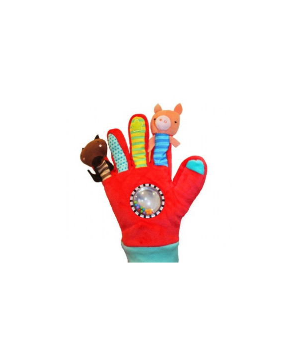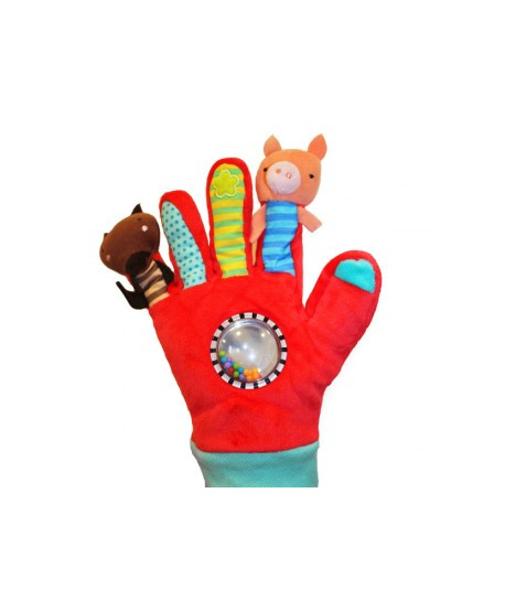 Este cerdito se fue al mercado, este compró la carne… ¡y este se la comió todita, todita! Ahora puedes contar la célebre historia de una forma nueva gracias a este guante que incluye un cerdito, un lobo y unas bolitas en el centro para captar la atención del pequeño. Érase una vez… ¡tú decides cómo sigue el cuento!